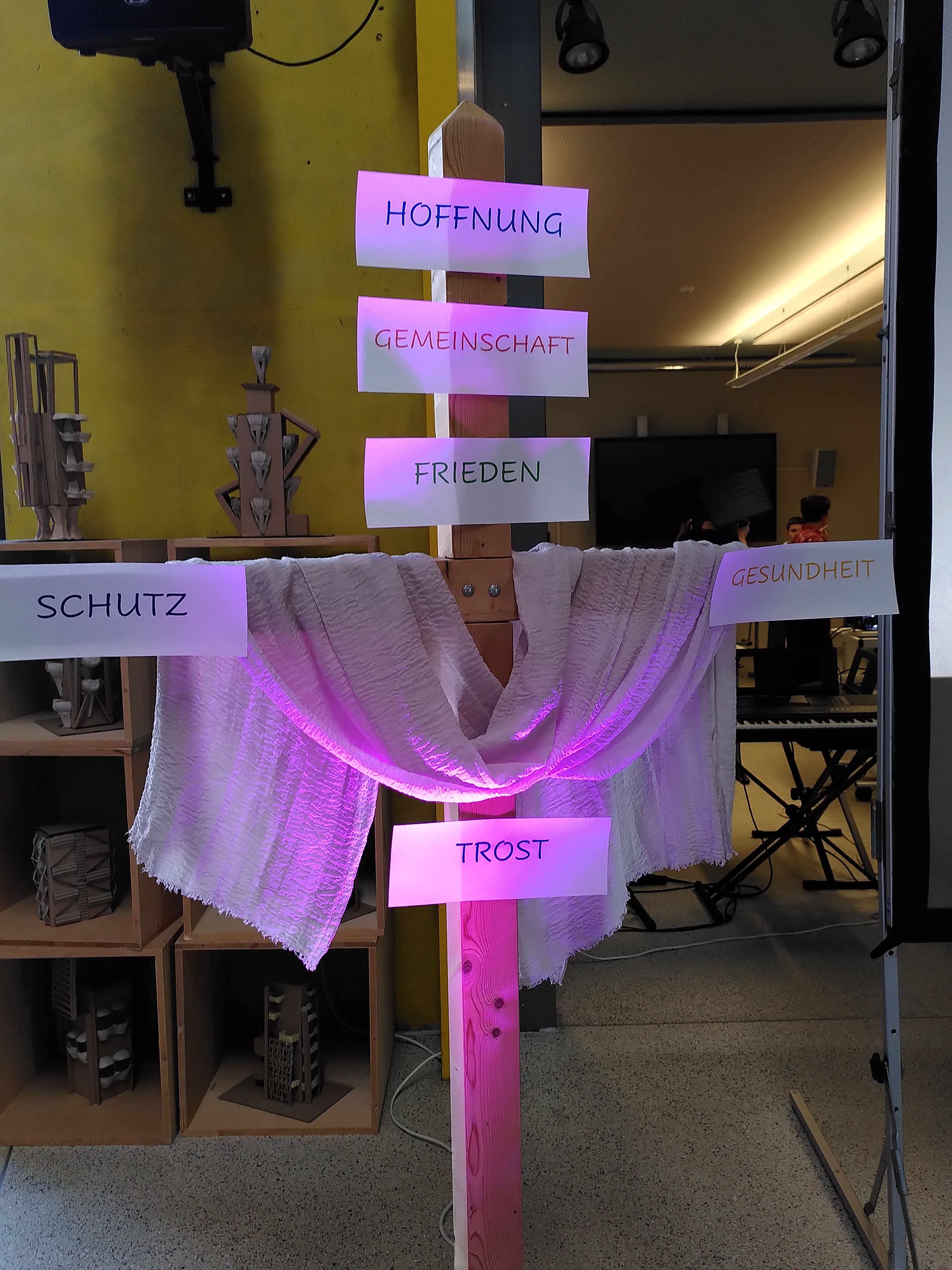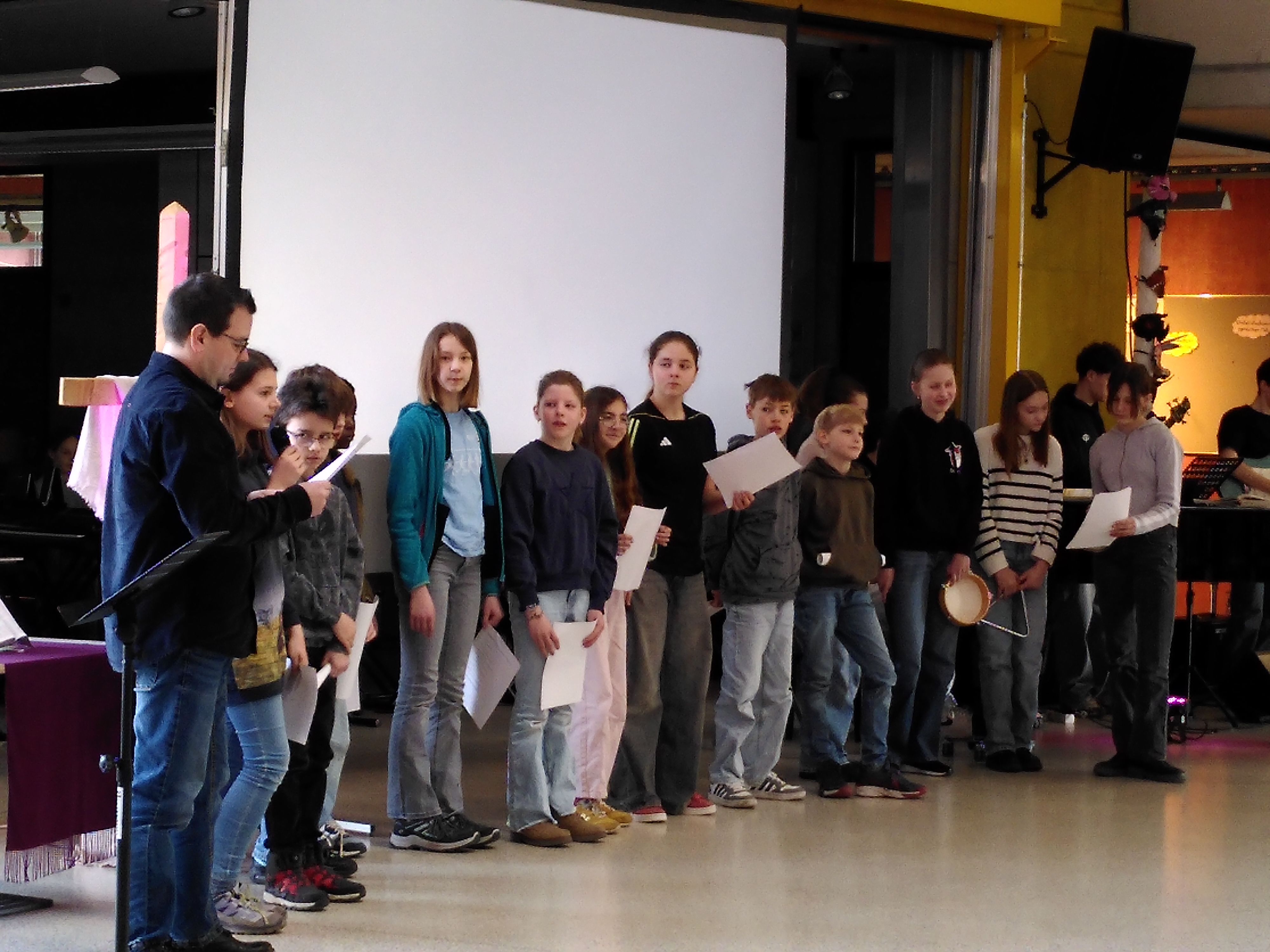 Herzlichen Dank an alle, die zum Gelingen des Gottesdienstes beigetragen haben: den Schülerinnen und Schülern der Klassen 5 c, 6 a und 6 b, der Band (Emma Seiter, Sophia Hofmann, Sarah Essig, Philemon Stumpf, Matteo Kautz, Leo Pinkwart und Leon Strobel, allen Teilnehmenden und der Schulleitung für die Genehmigung der Veranstaltung sowie allen spontanen Helfern.